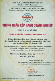 Đào tạo: Khi sang Nhật học tập, làm việc các bạn phải thi đỗ một bài kiểm tra tiếng Nhật. Do đó Traum Việt Nam có mở các lớp hỗ trợ đào tạo tiếng Nhật cho học viên. Thời gian học tập từ 4 đến 6 tháng, học viên học từ thứ 2 đến thứ 6 hàng tuần. Đội ngũ giáo viên có kinh nghiệm đã từng học tập và làm việc tại Nhật. Ngoài ra còn có các giáo viên người Nhật cũng tham gia giảng dạy, nhờ vậy các học viên sẽ không chỉ học tập tiếng Nhật mà còn hiểu thêm về văn hóa, phong tục cũng như cách giao tiếp khi ở Nhật. Nội quy tại trung tâm sẽ tuân theo chuẩn làm việc 5s – là chuẩn quản lý doanh nghiệp tại Nhật. Nhờ vậy khi làm quen với các quy chế này, các bạn sẽ có thể nhanh chóng thích nghi với môi trường làm việc cũng như học tập tại Nhật.