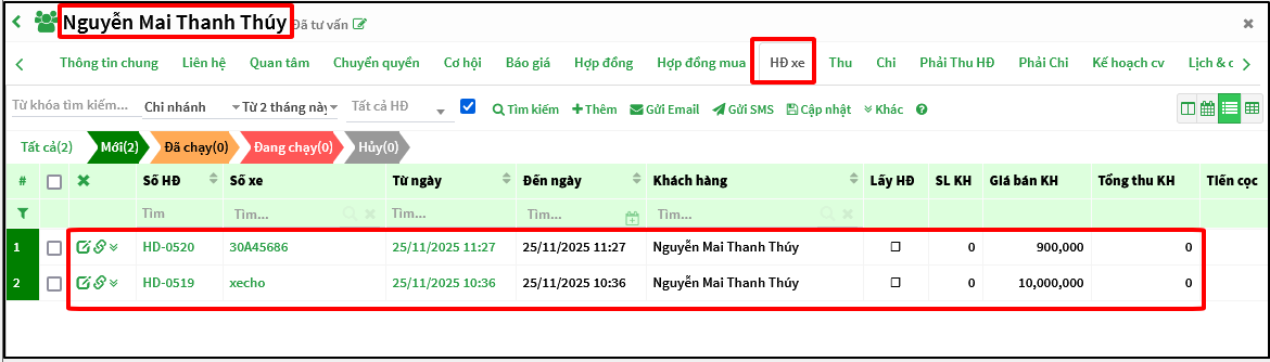 Trên GoUP khi sales vào chi tiết khách hàng phần mềm sẽ xem được thông kê chi tiết các Hợp đồng khách hàng đã ký với Công ty => để có các chính sách chăm sóc đối với từng đối tượng khách hàng.