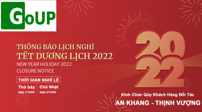 Công ty CP công nghệ GoUP xin thông báo lịch nghỉ tết Dương lịch năm 2022 như sau: